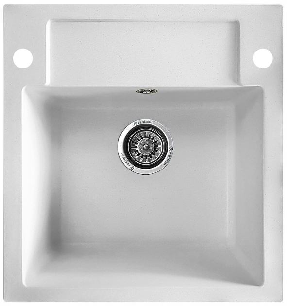 Кухонна мийка, квадратна, кам'яна Valetti 69D 52х49см Біла + сифон