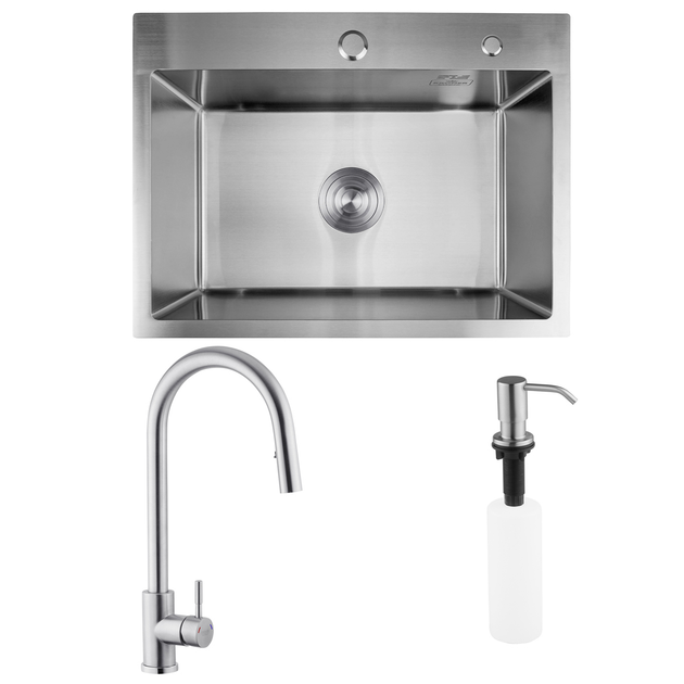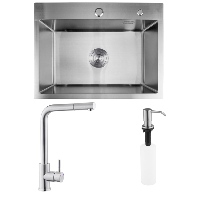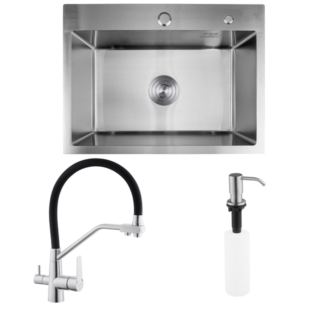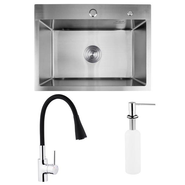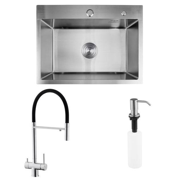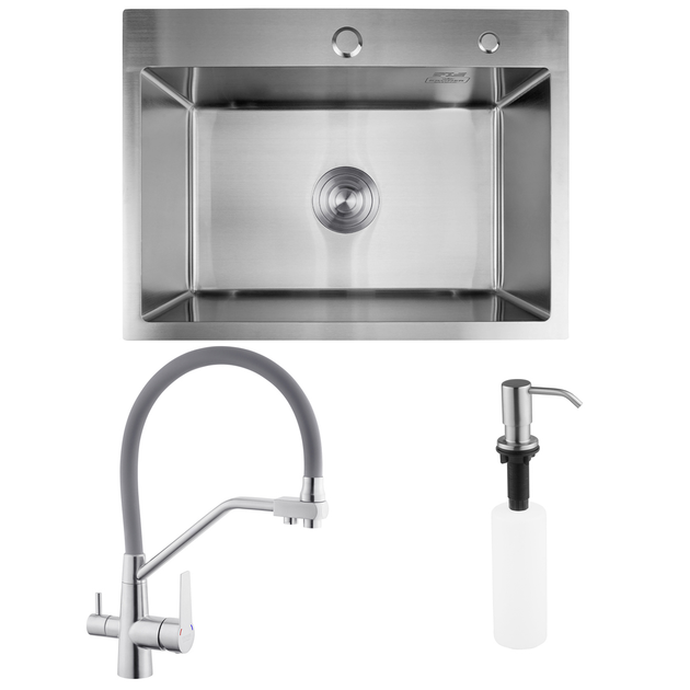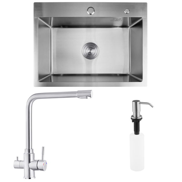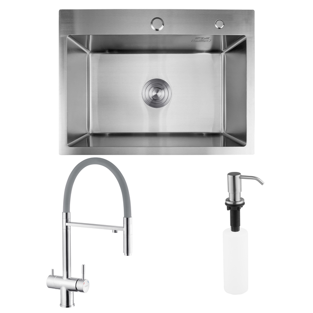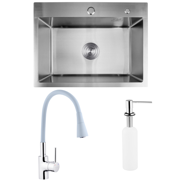 Набір 3 в 1 кухонне миття Kroner KRP Gebrstet - 6050HM + змішувач + дозатор SET-2221-10