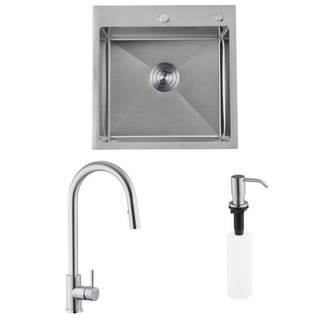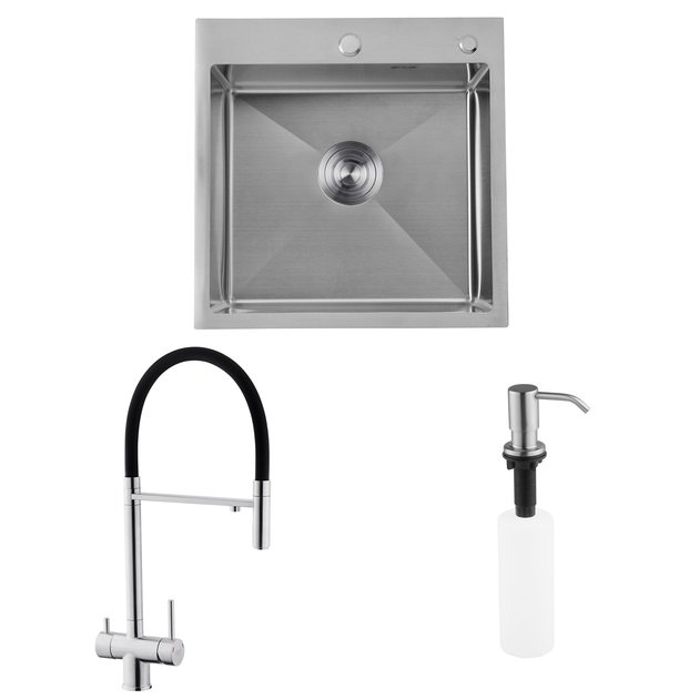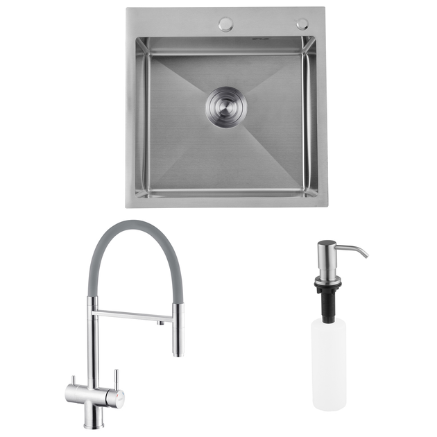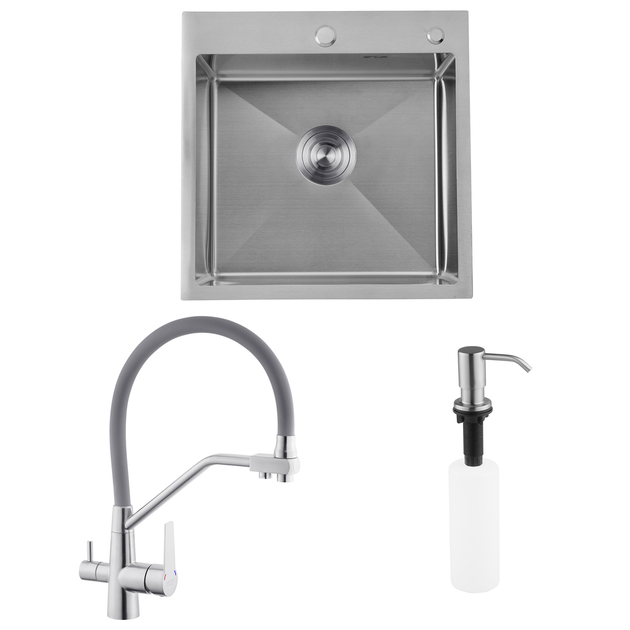 Набір 3 в 1 кухонне миття Kroner KRP Gebrstet - 5050HM + змішувач + дозатор SET-2222-9