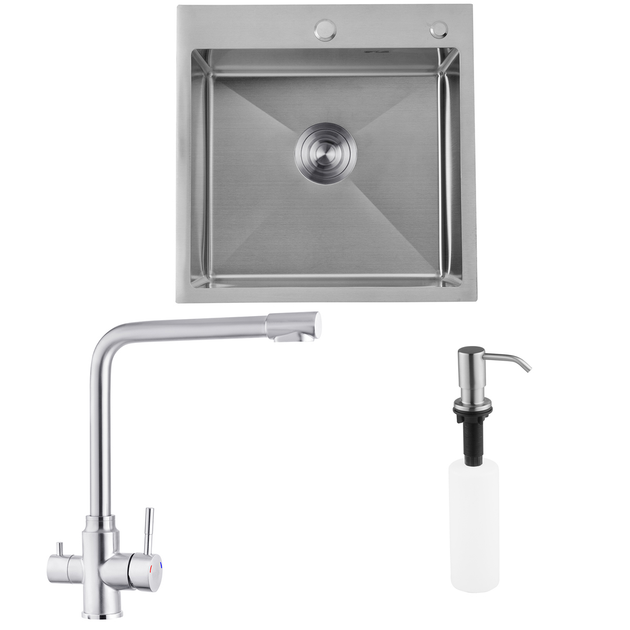 Набір 3 в 1 кухонне миття Kroner KRP Gebrstet - 5050HM + змішувач + дозатор SET-2222-4