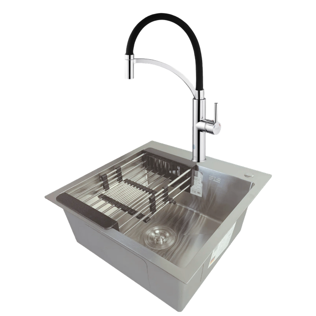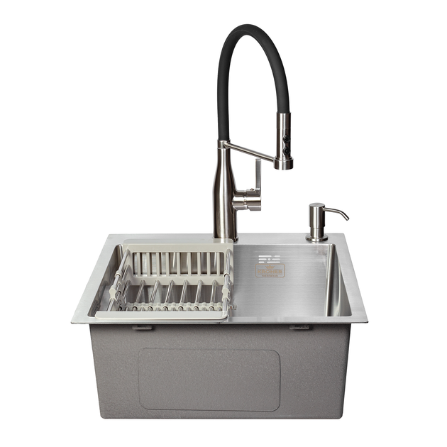Кухонна мийка Kroner KRP Gebrstet 5843 HM 3,0/1,0 мм і змішувач для кухні з гнучким виливом