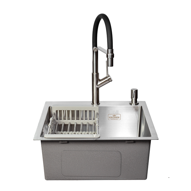 Набір 3 в 1 кухонне миття Kroner KRP Gebrstet - 5050HM + змішувач для кухні Kroner KRP Edelstahl Klassisch - ESG037 + дозато