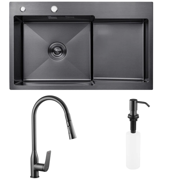 Набір 3 в 1 кухонне миття Kroner KRP PVD Schwarze - 7848LHM + змішувач + дозатор SET-2209-3