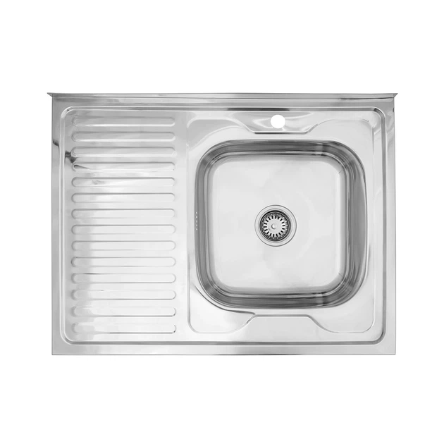 Кухонна мийка накладна з нержавіючої сталі Kroner KRP Polierte - 60х80R з крилом (0.6 мм)