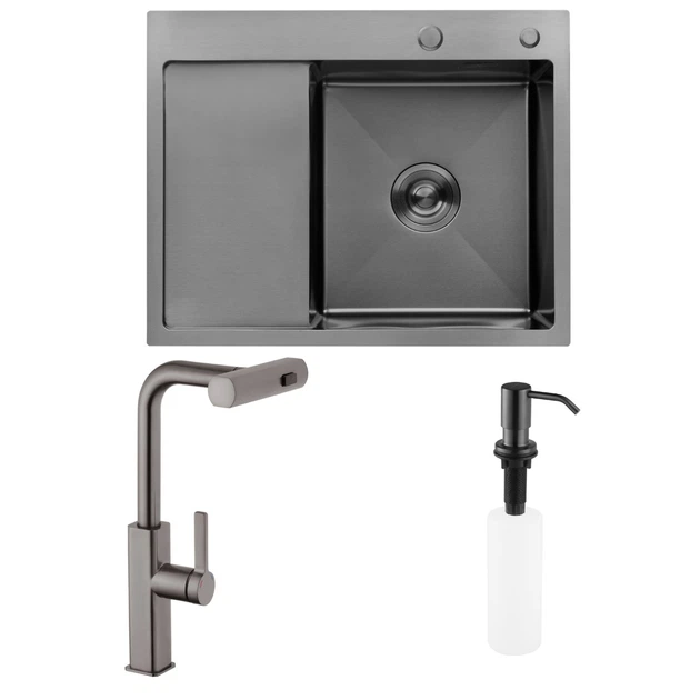 Набір 3 в 1 кухонне миття Kroner KRP Schwarze - 6350LHM PVD + змішувач + дозатор SET-2211-5