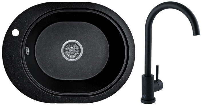 Мийка кухонна, гранітна, овальна Valetti 61L 56х43см Чорна + змішувач