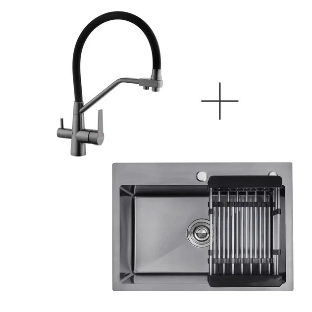 Кухонна раковина Kroner KRP Geburstet-6350HM зі змішувачем із підключенням до фільтра