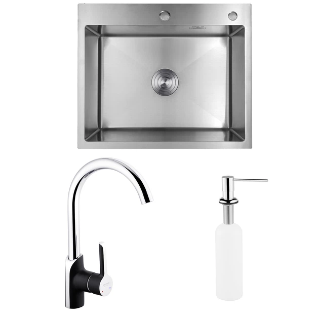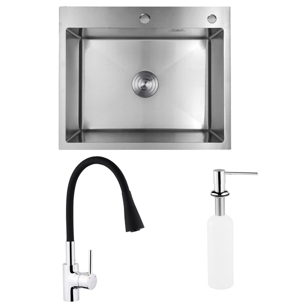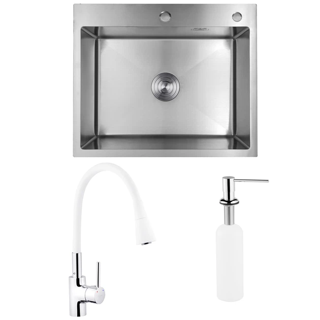 Набір 3 в 1 кухонне миття Kroner KRP Gebrstet - 6050HM + змішувач + дозатор SET-2221-18