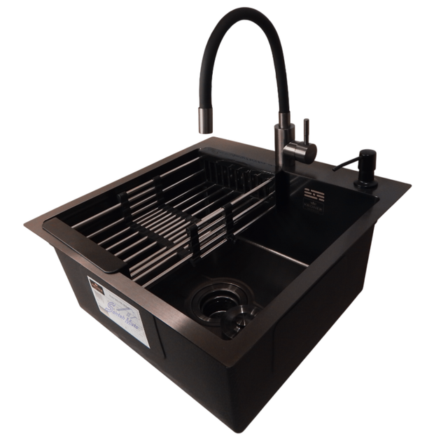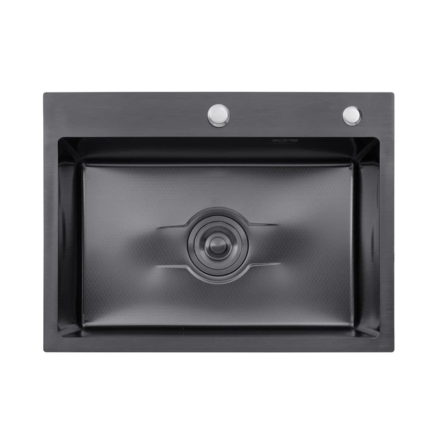 Кухонна мийка з нержавіючої сталі Kroner KRP Derby - 58х43HM PVD (2,5/0,5) чорна