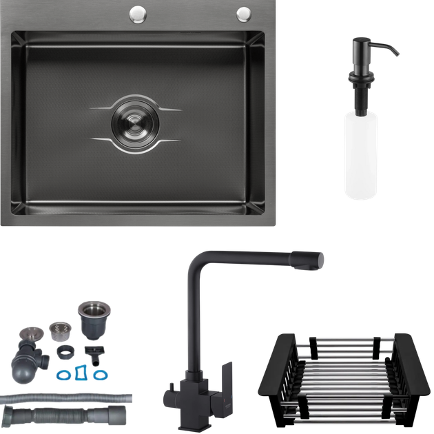 Комплект кухонної мийки Kroner KRP Derby - 60х50HM PVD (2,5/0,5 мм)