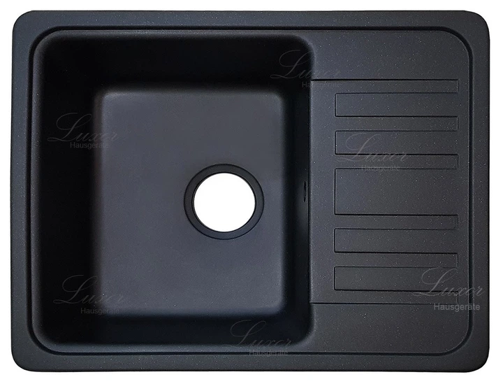 Гранітна кухонна мийка Luxor Kpe 57 x 46 BLack Granit + сифон, перелив, горловина в комплекті чорний