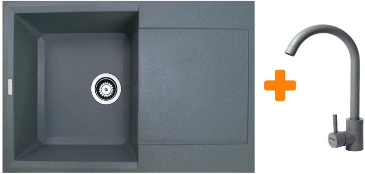 Кухонна мийка ADAMANT Horizon сіра з сифоном Nova + кухонний змішувач та дозатор