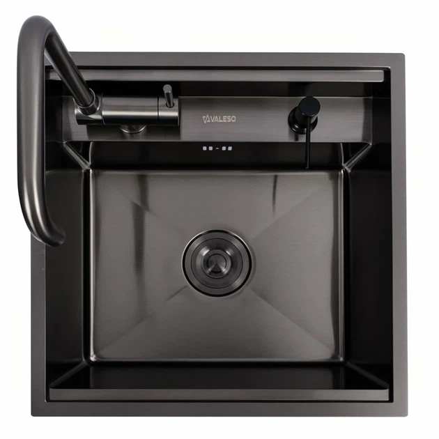 Кухонна мийка CM 50*50 прихована PVD чорна VALESO Handmade (змішувач в комплекті)