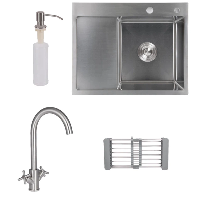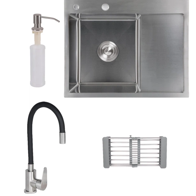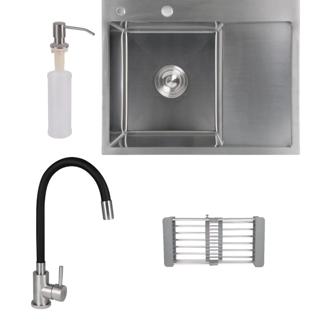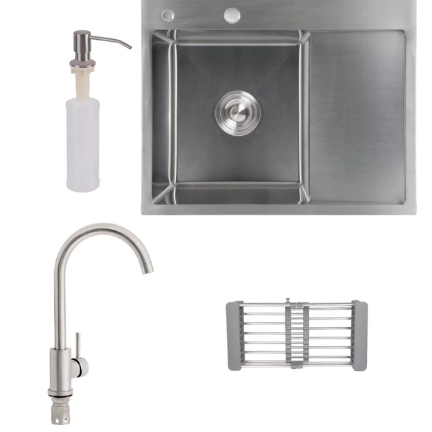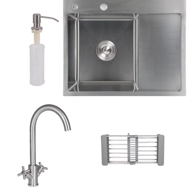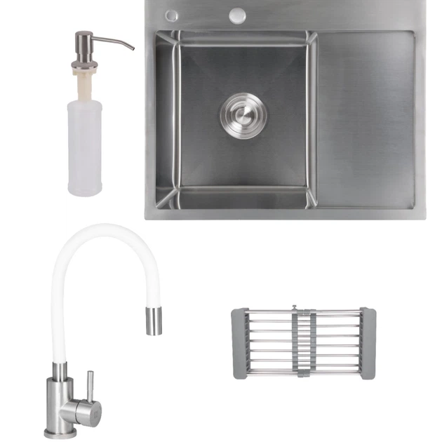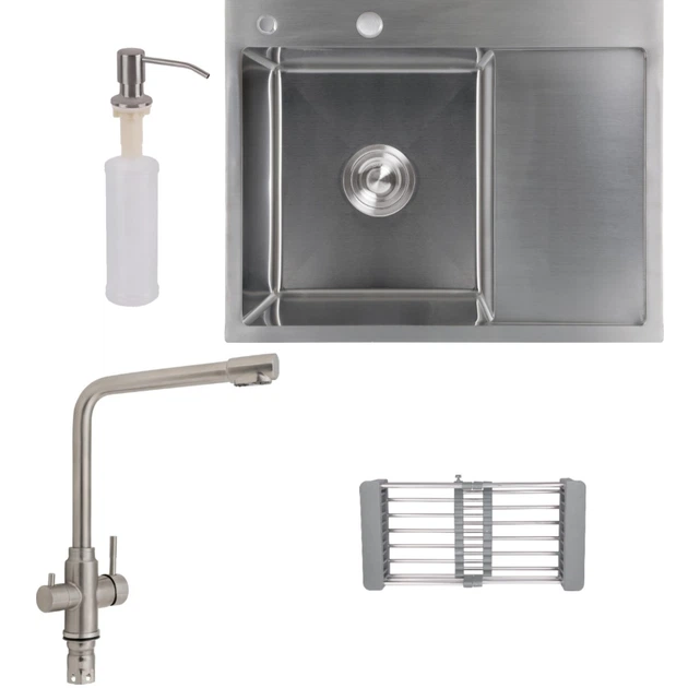Набір 3 в 1 мийка для кухні інтегрована Lidz Handmade H6350R крило справа + Змішувач для кухні Lidz Aria 020F1 + дозатор SET