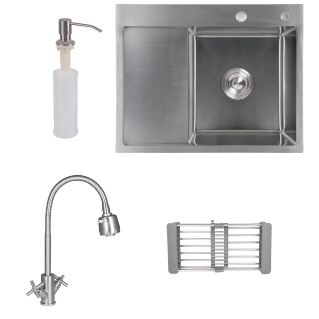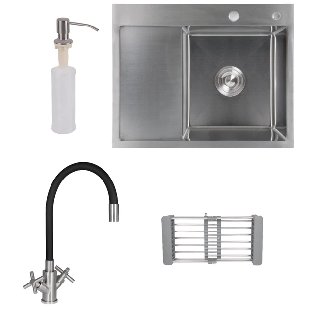 Набір 3 в 1 мийка для кухні інтегрована Lidz Handmade H6350L крило зліва + Змішувач для кухні Lidz Wind 013F4 + дозатор SET-