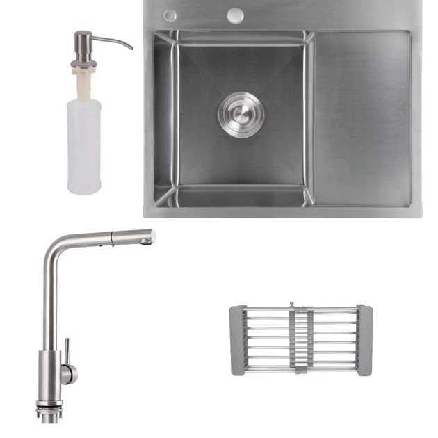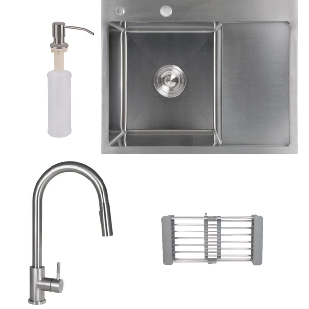 Набір 3 в 1 мийка для кухні інтегрована Lidz Handmade H6350R крило справа + Змішувач для кухні Lidz Aria 015FL + дозатор SET