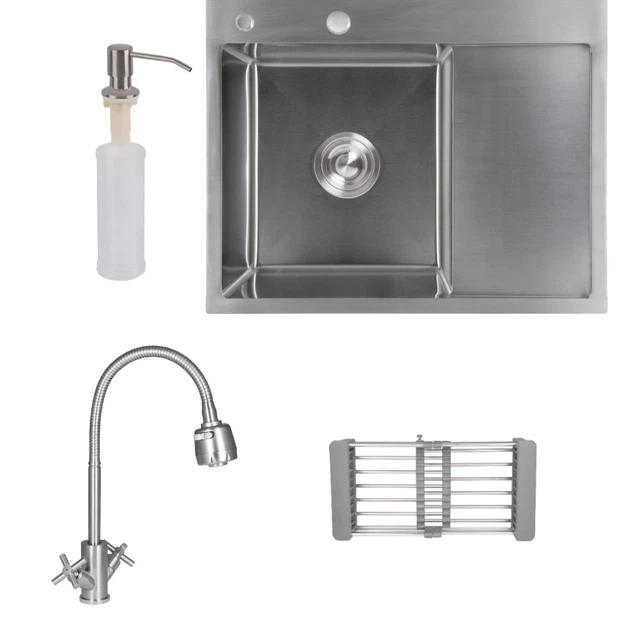 Набір 3 в 1 мийка для кухні інтегрована Lidz Handmade H6350R крило справа + Змішувач для кухні Lidz Aria 015F3 + дозатор SET