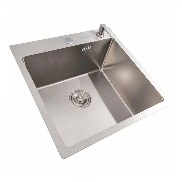 Кухонна мийка 50*50 нержавійка Valeso Handmade (сифон круглий, дозатор, кріплення)
