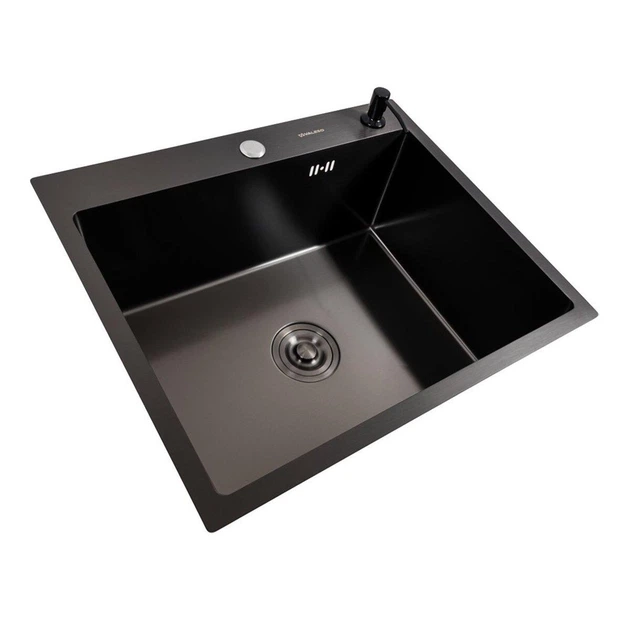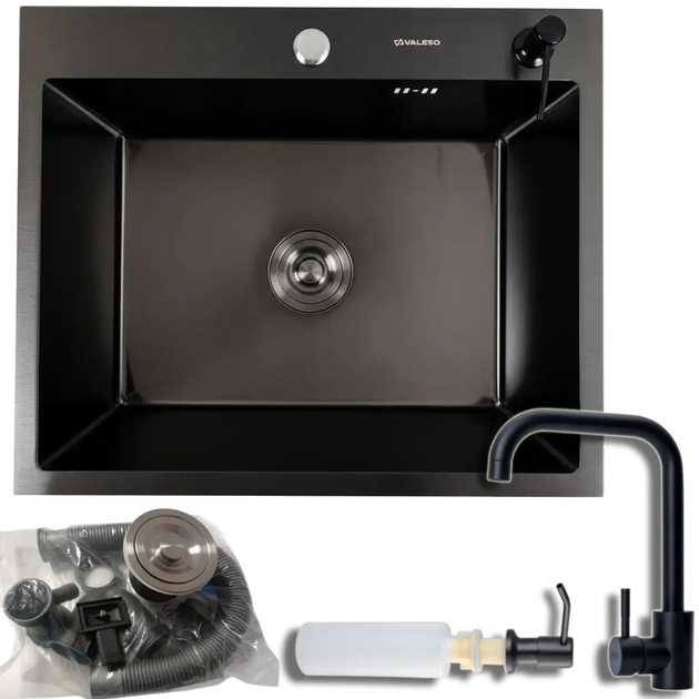 Кухонна мийка чорна 60*50 PVD VALESO Handmade (сифон круглий, 3,0/0,8)