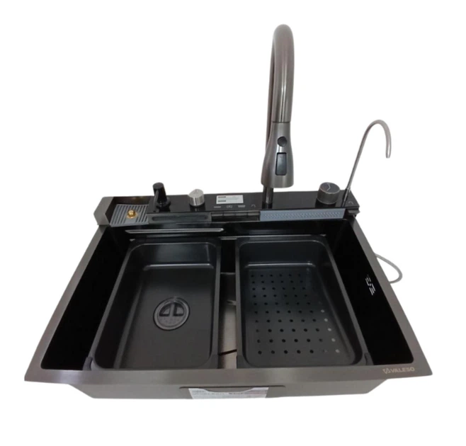 Мийка кухонна PVD чорна Valeso Handmade "Водоспад" (ДЕКОР) 68х45M