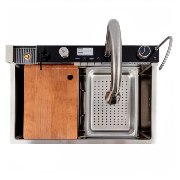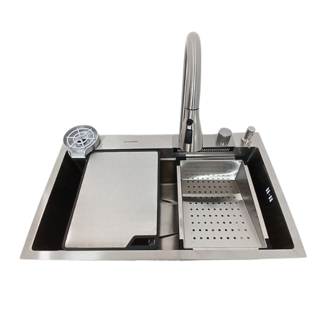Кухонна мийка PVD чорна CM 75*46A Platinum Handmade "Водоспад"
