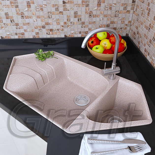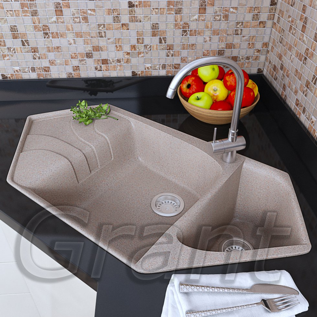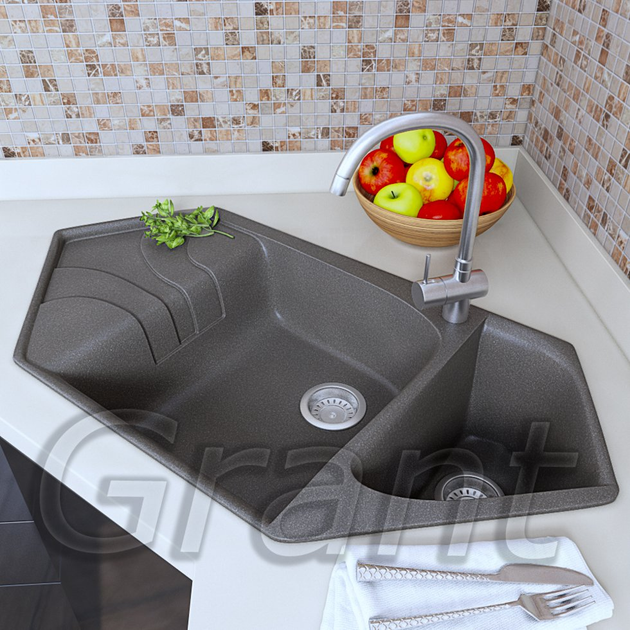 Гранітна плита, мийка Grant Foster світло-сіра кутова