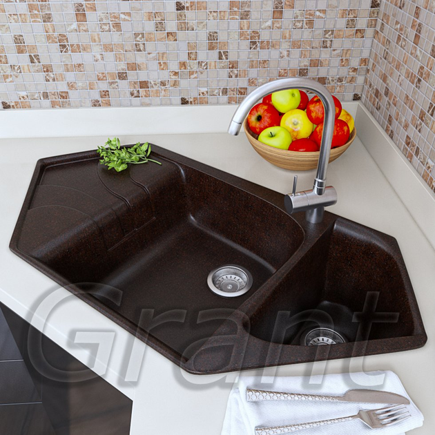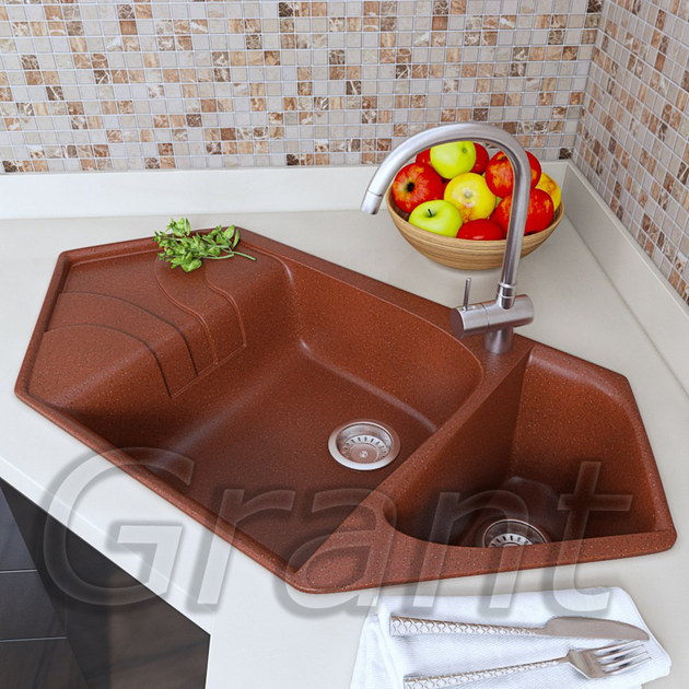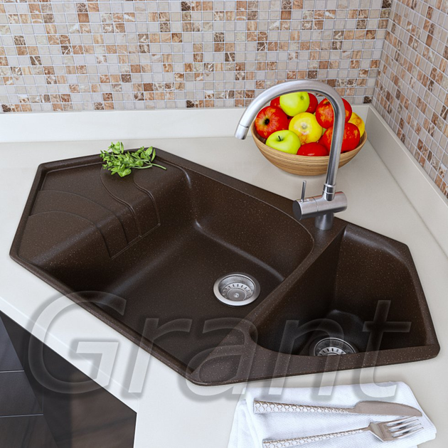 Гранітна плита, мийка Grant Foster коричневий кутова
