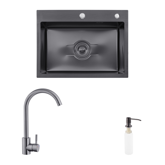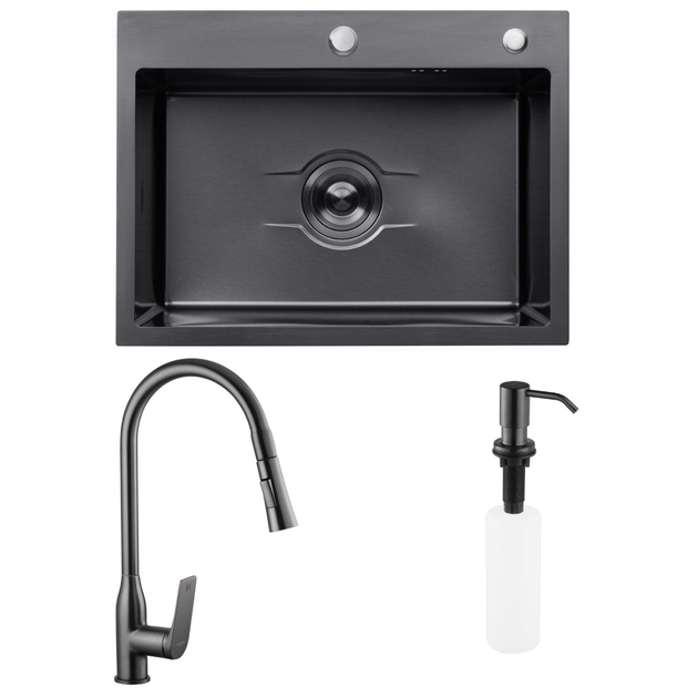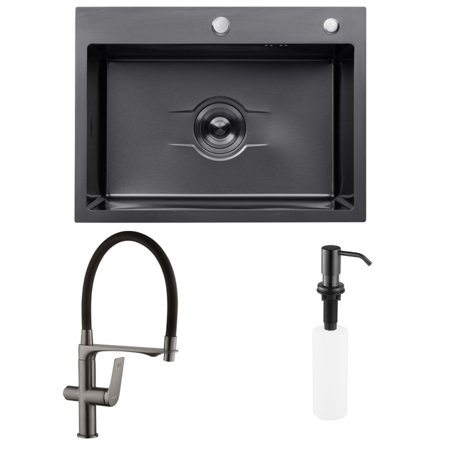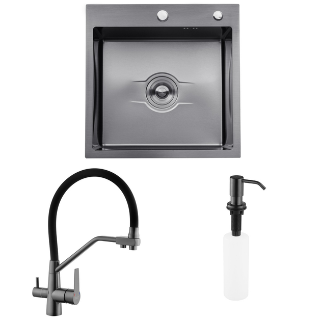 Набір 3 в 1 кухонне миття Kroner Derby KRP PVD - 5843HM + змішувач Kroner KRP Edelstahl Klassisch - PVD03817BLK + дозатор SE