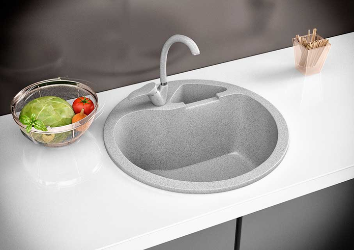 Кам'яна кухонна мийка Akvatika сіра, прямокутна гранітна мийка для кухні сірого кольору зі штучного каменю Akvatika (3444950