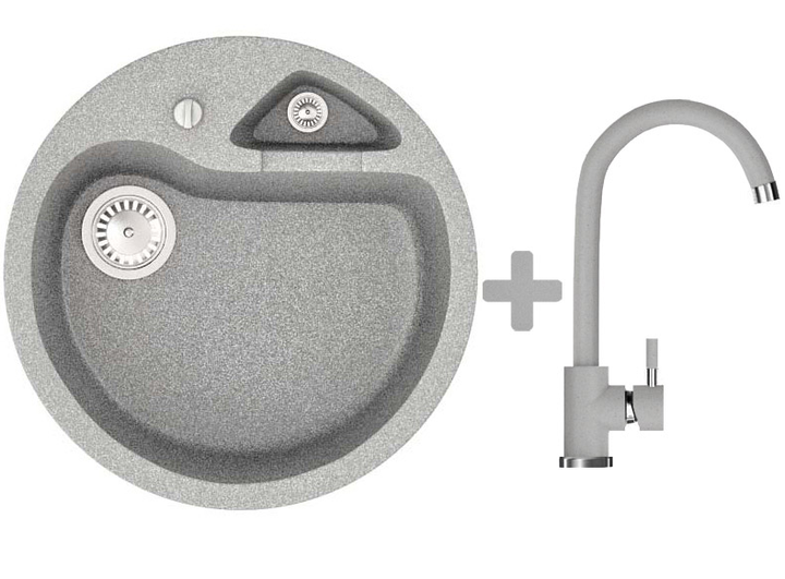 Комплект: мийка гранітна Stella Classic Сірий + Кран