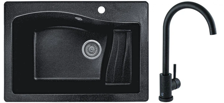 Мийка кухонна, гранітна, прямокутна Valetti 70S 71х49см Чорна + змішувач