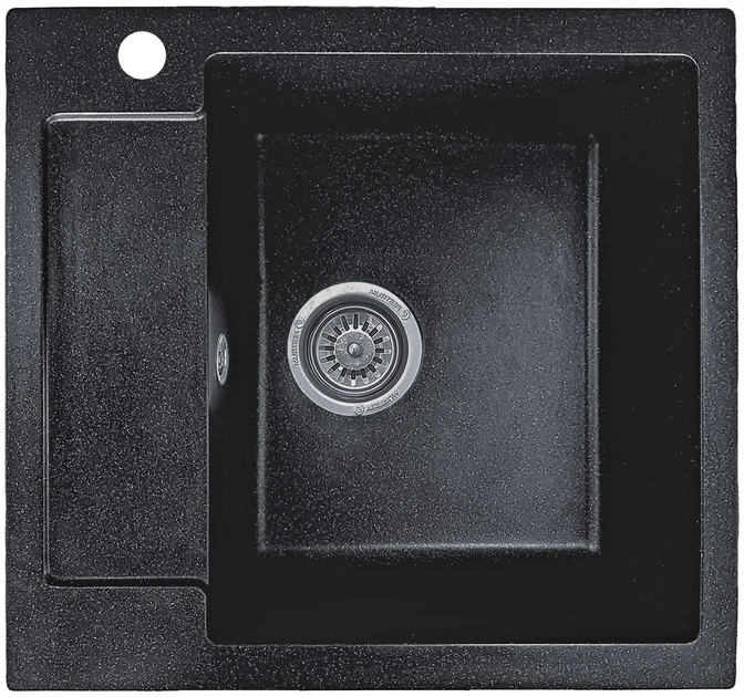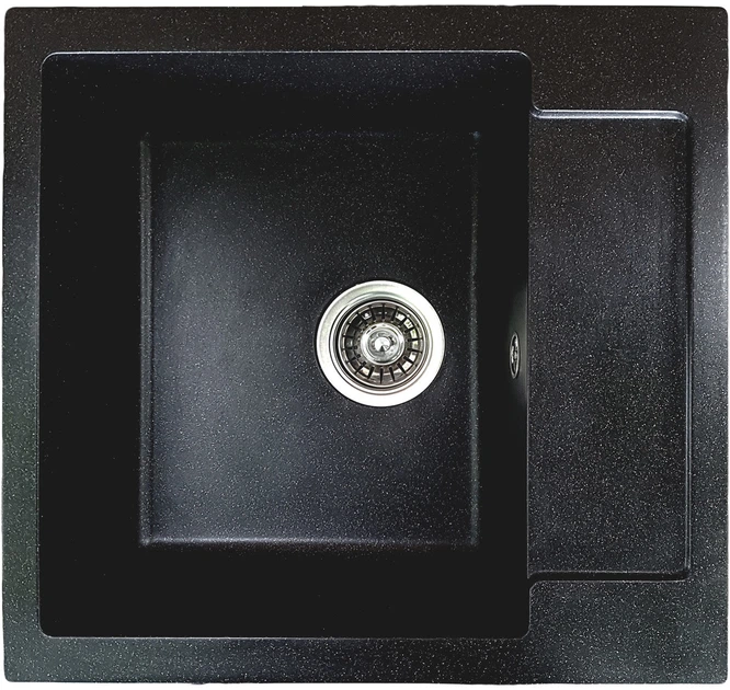 Кухонна мийка, квадратна, кам'яна Valetti 69L 52х49см Чорна + сифон