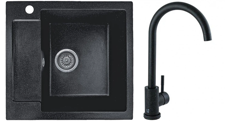 Мийка кухонна, гранітна, квадратна Valetti 69L 52х49см Чорна + змішувач
