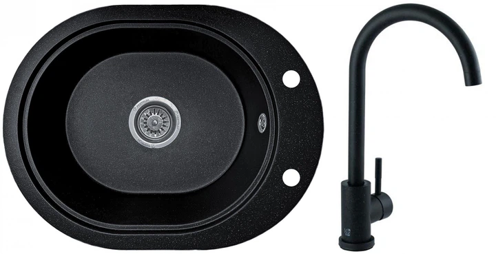 Мийка кухонна, гранітна, овальна Valetti 61D 56х43см Чорна + змішувач