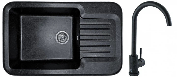 Мийка кухонна, гранітна, прямокутна Valetti 55N 81х51см Чорна + змішувач