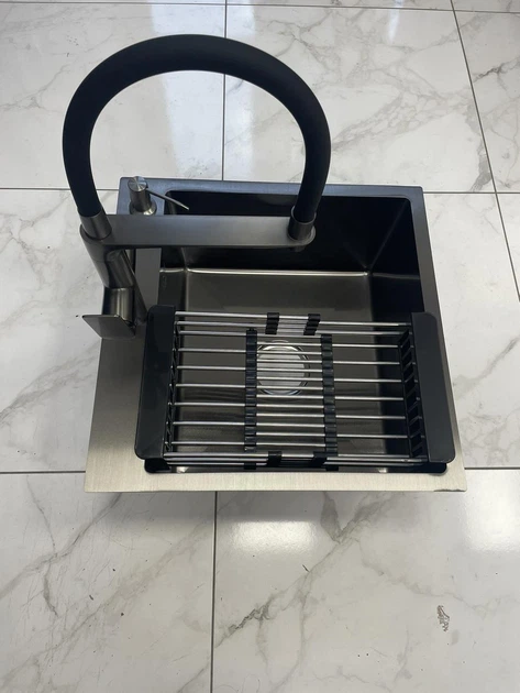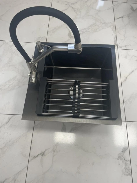 Мийка Lidz 50х50 чорна та змішувач Lidz 020F3 Nickel гнучкий із під'єднанням до фільтра води. (37647..)