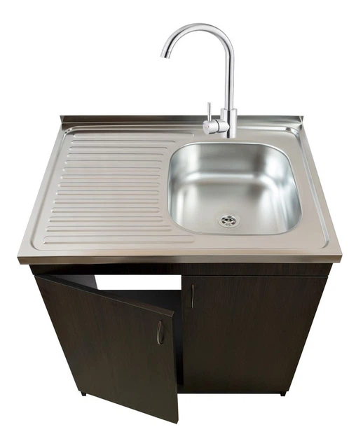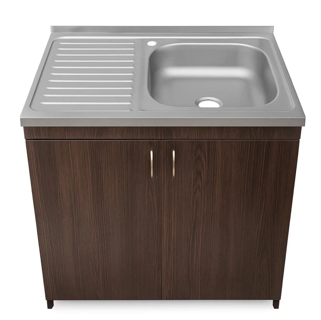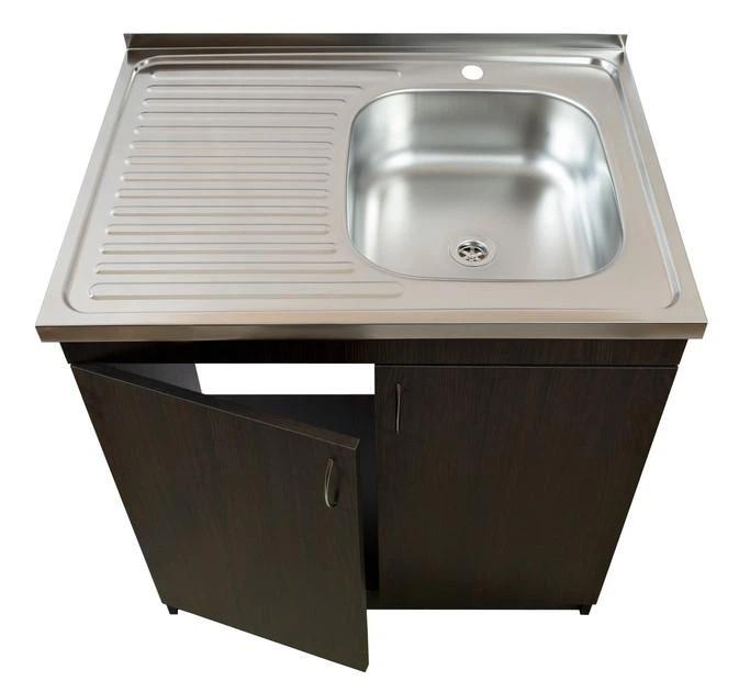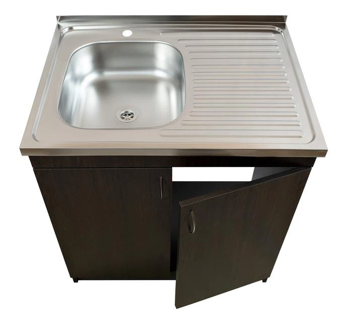 Тумба для кухні Венге з накладною мийкою 80х50 (0,6мм) ліва чаша, з сифоном