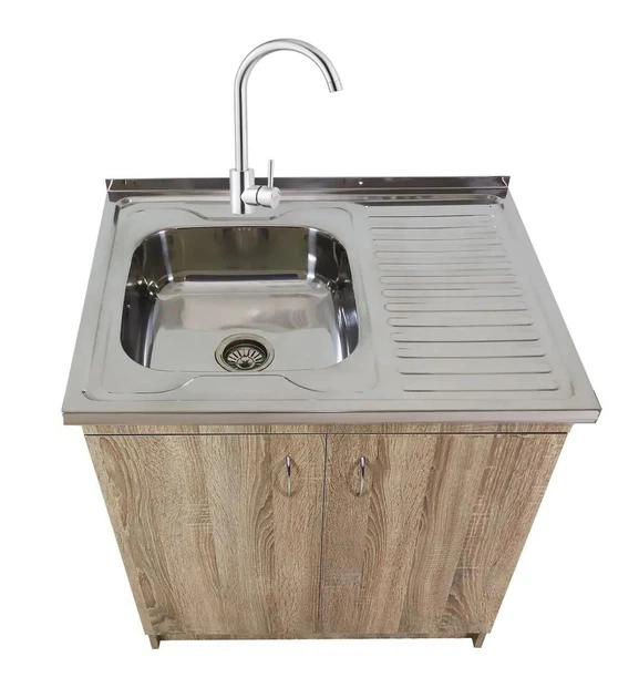 Тумба для кухні Трюфель із мийкою 80х60 (0,6мм) ліва чаша, нержавіючий змішувач, сифон