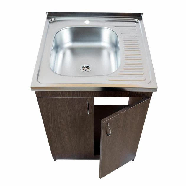 Тумба для кухні Венге з накладною мийкою 80х60 (0,6мм) права чаша, з сифоном