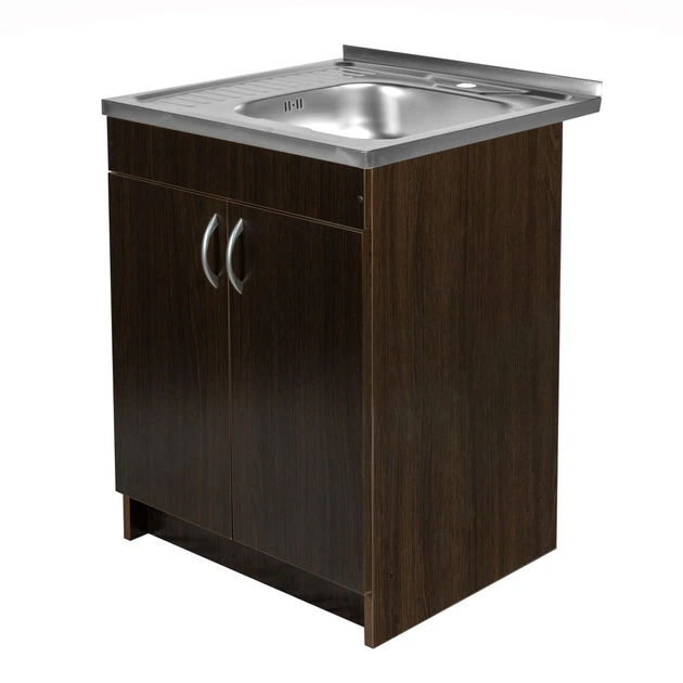 Тумба для кухні Венге з накладною мийкою 60х60 (0,6мм) ліва чаша, з сифоном