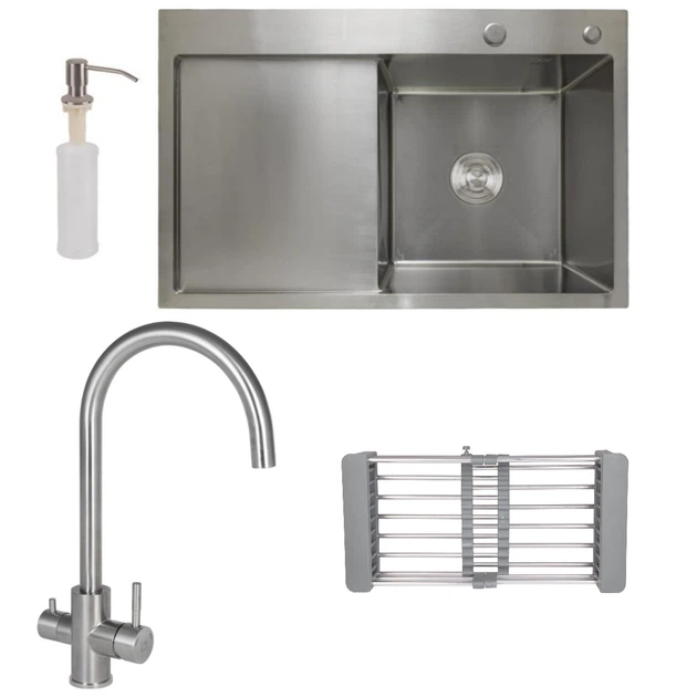 Набір 3 в 1 мийка для кухні інтегрована Lidz Handmade H7849L крило зліва + Змішувач для кухні Lidz Aria 015FL2 + дозатор SET