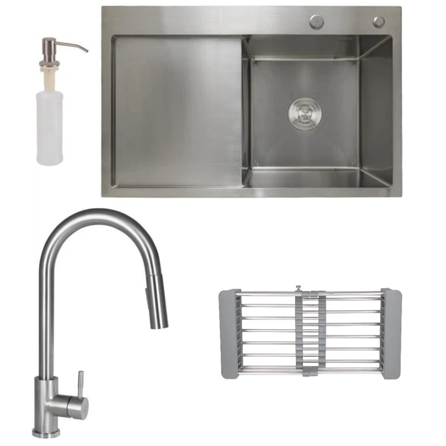 Набір 3 в 1 мийка для кухні інтегрована Lidz Handmade H7849L крило зліва + Змішувач для кухні Lidz Aria 020F + дозатор SET-L