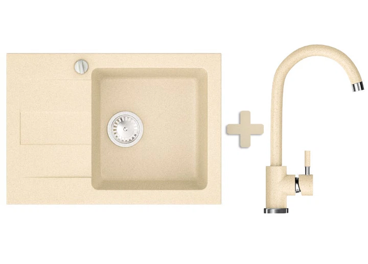 Комплект: мийка гранітна Stella River 60 бежевий + Кран