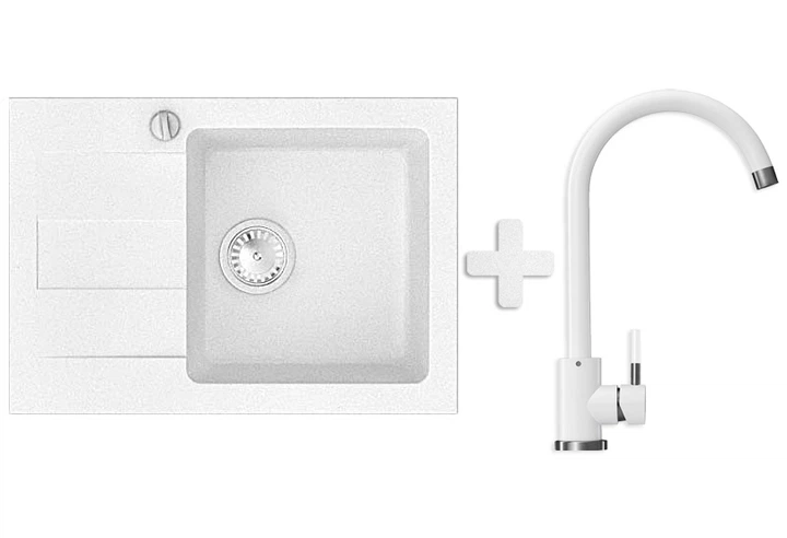 Комплект: мийка гранітна Stella River 60 білий + Кран