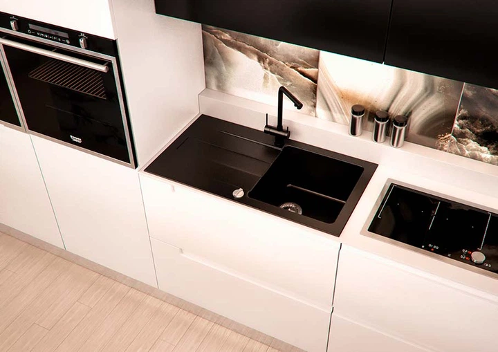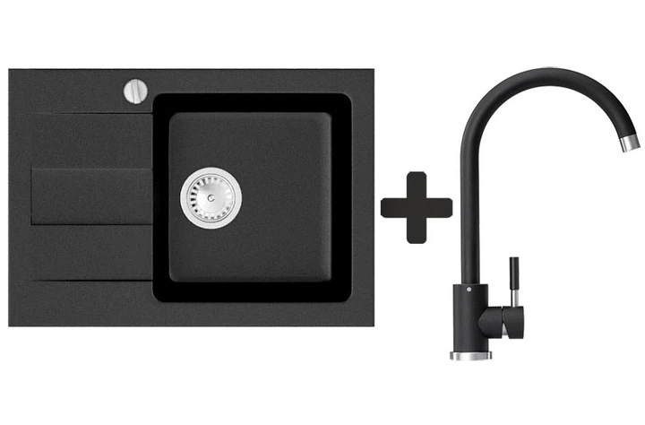 Комплект: мийка гранітна Stella River 60 чорний + Кран