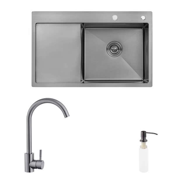Комплект кухонна мийка Kroner Schwarze-7849RHM PVD + змішувач Edelstahl Klassisch-SCH035PVD + дозатор Spender-026