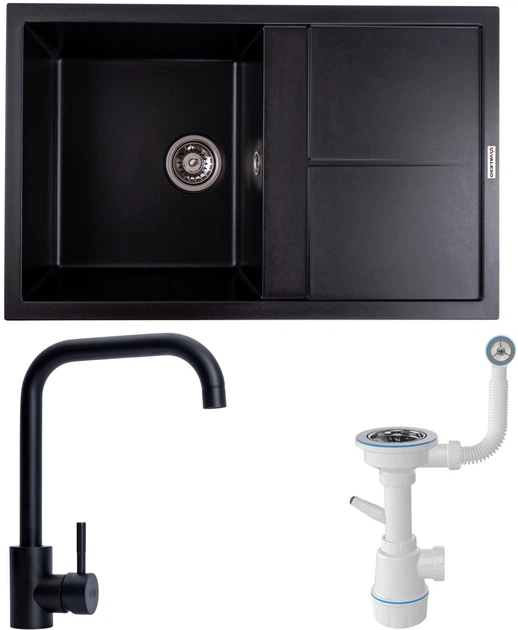 Кухонна мийка граніт VALESO Selena 7950 чорна з сифоном + змішувач кухонний