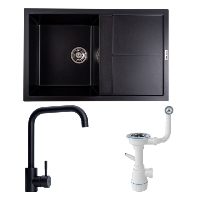 Мийка гранітна 7950 SELENA (чорна) + сифон 1041 + змішувач BG77 (чорний)