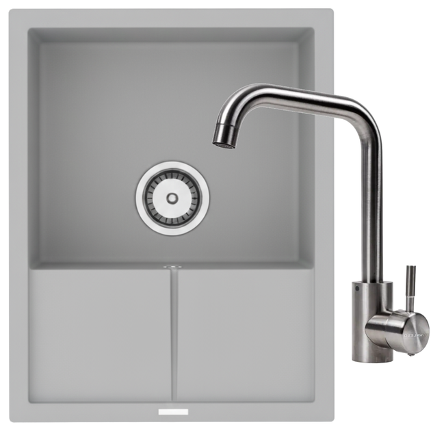 Кам'яна кухонна мийка Akvatika сіра з отвором, квадратна гранітна мийка для кухні сірого кольору зі штучного каменю Akvatika