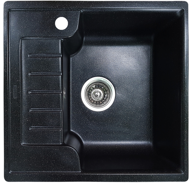 Кухонна мийка, квадратна, кам'яна Valetti 71L 51х49см Чорна + сифон